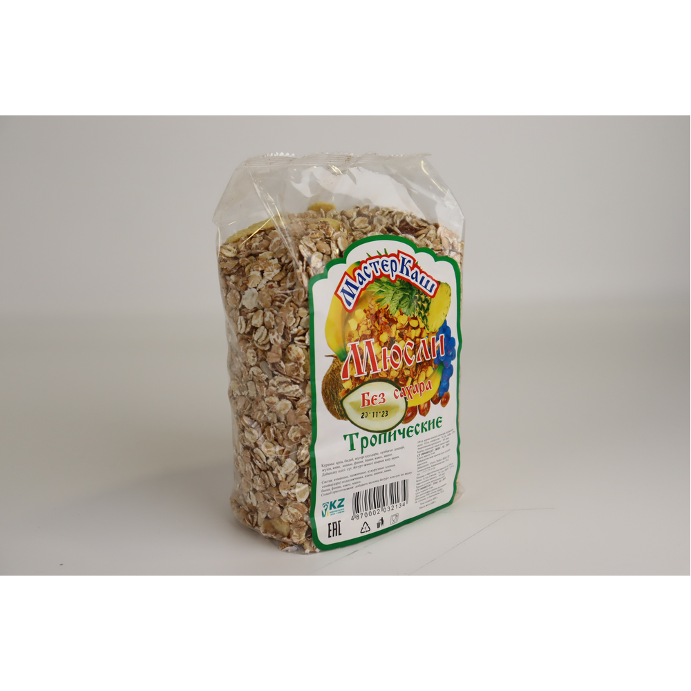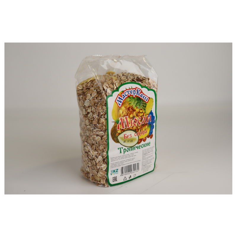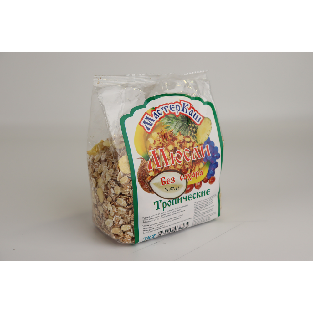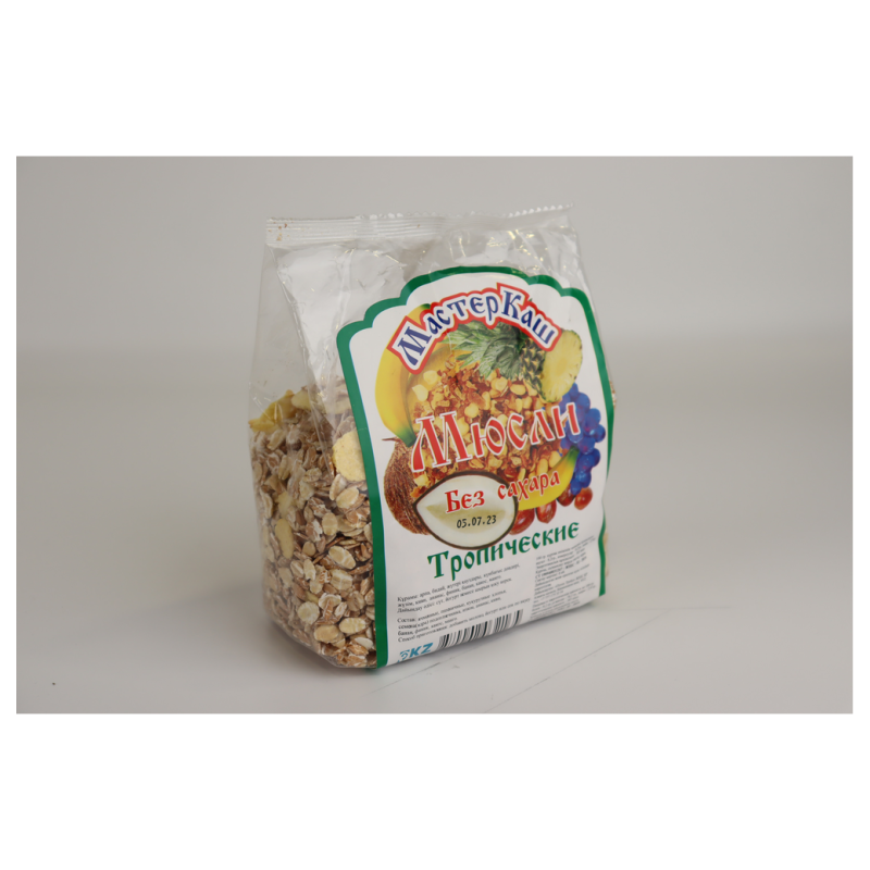Мюсли Мастеркаш Тропические Пак – это вкусные мюсли с ароматными тропическими фруктами. Они состоят из муки пшеницы, сахара, масла растительного происхождения, пшеничного белка, пророщенного зерна, сухих тропических фруктов, природных ароматизаторов и других ингредиентов. Они прекрасно подходят для завтрака или перекуса в любое время дня.