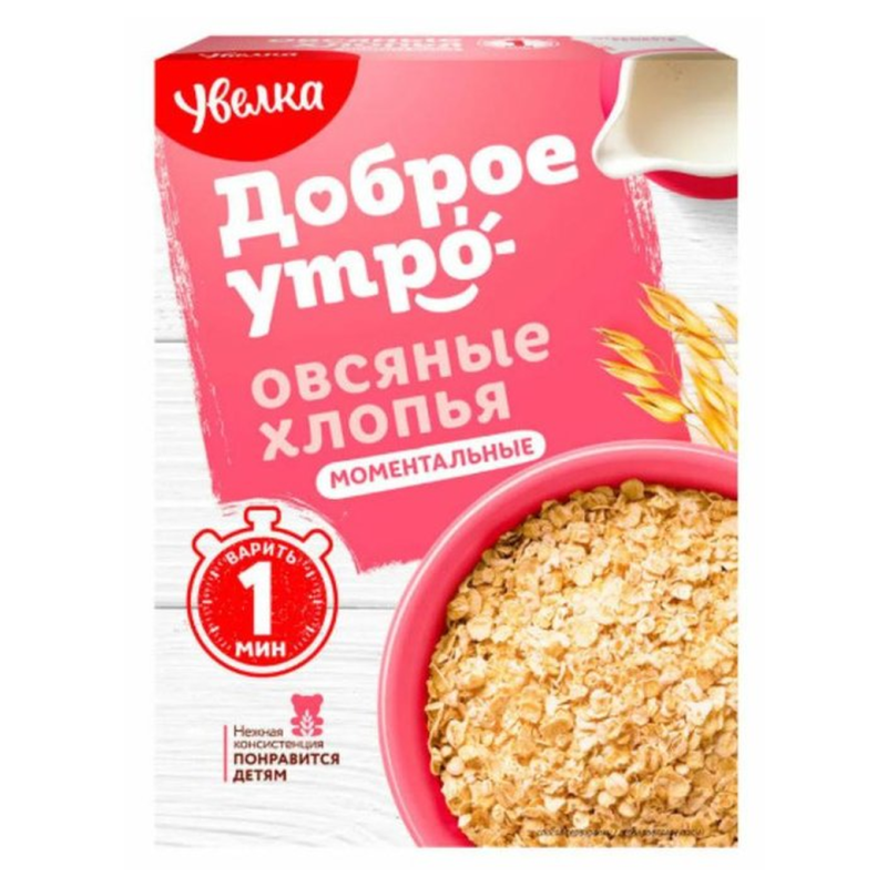 Производство овсяных хлопьев быстрого приготовления осуществляется по специальной технологии, благодаря которой получается продукт с сохранением всех полезных и питательных свойств. Всего за одну минуту из этих хлопьев можно приготовить легкую, пышную и полезную кашу. Овсяные хлопья богаты белками, углеводами, калием, фосфором, цинком, витаминами группы В. А содержащиеся в хлопьях пищевые волокна улучшают пищеварение. Благодаря своей легкой, мягкой консистенции готовая каша подойдет для кормлени