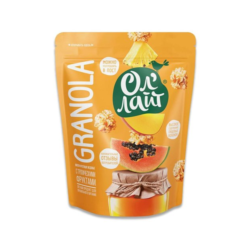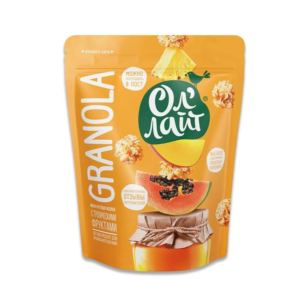 Мюсли Ол Лайт Хрустящие Медовые Троп Фрукты – это вкусные и полезные снэки из меда и фруктов. Они содержат натуральные ингредиенты, включая мед, апельсиновый сок, абрикосы, ананасы и манго. Вес пакета составляет 280 г амм.