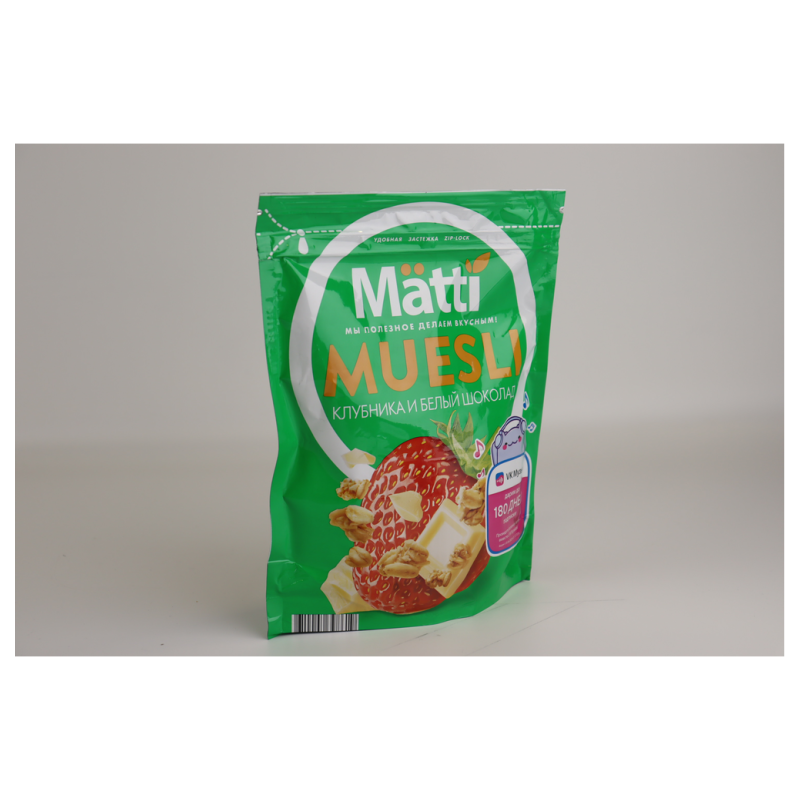 Мюсли Matti Клубника и Белый Шоколад - это вкусное и ароматное лакомство из 14 порций по 250 г амм. Состав продукта включает в себя муку пшеничную, сахар, масло растительное, клубнику, белый шоколад, протеиновые концентраты, молочные продукты, пищевые добавки и природные ароматизаторы. Все ингредиенты проходят строгий контроль качества.