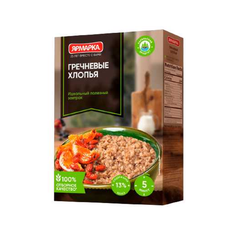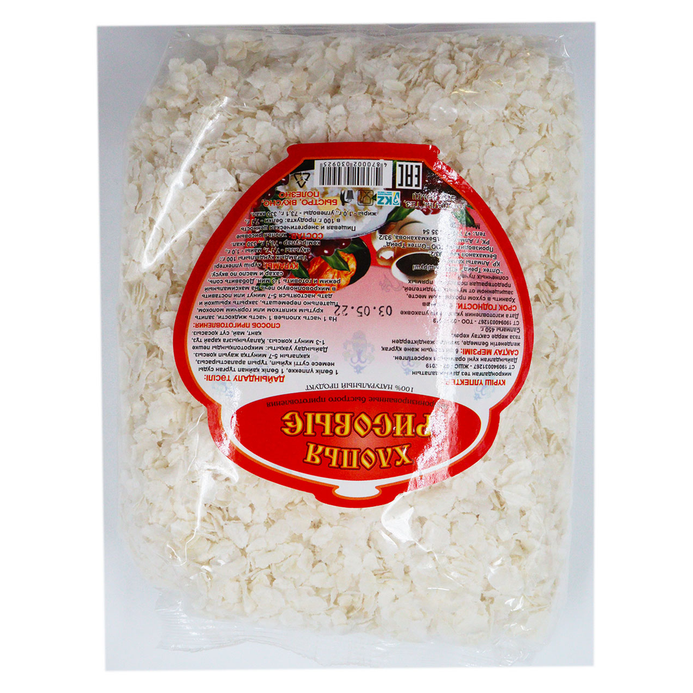 Гречневые хлопья изготовлены из высококачественных цельных зерен гречихи, расплющенных в тонкие хлопья, без добавок, без консервантов. Каша из гречневых хлопьев вкусна и питательна, содержит природные витамины и минеральные вещества. При желании хлопья можно использовать для выпечки печенья, пирогов, хлебцев, хлеба и других хлебобулочных изделий, а также в качестве добавки в кефир, йогурт или кисель