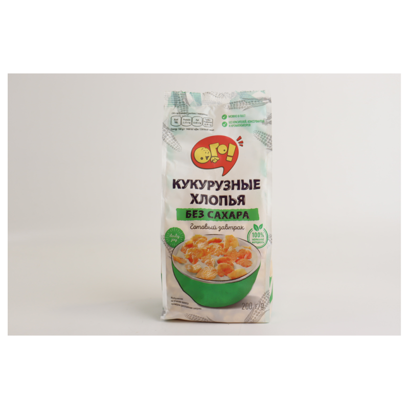 Завтрак сухой кукурузные хлопья без сахара - это полезный и вкусный продукт. Он содержит в своем составе много полезных витаминов и минералов. Этот продукт произведен из натуральной кукурузы и представляет собой завтрак в виде сухих хлопьев весом 200 г амм.