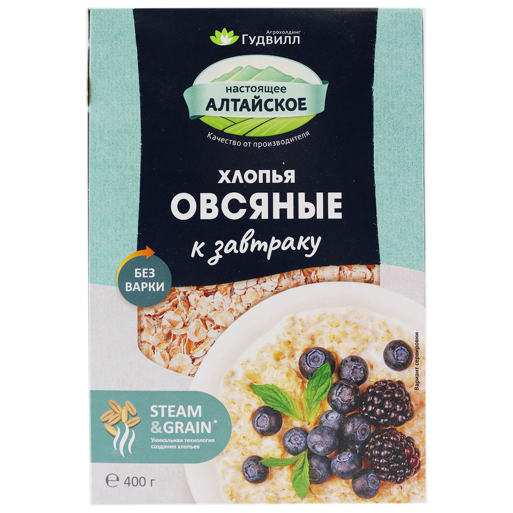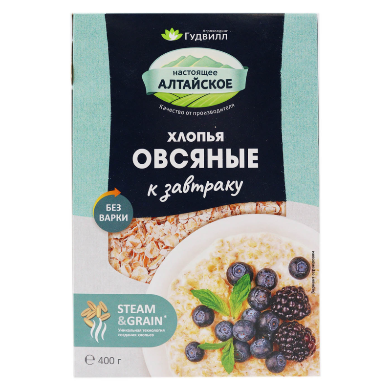 Хлопья Гудвилл Овсяные Не Требуют Варки – это вкусные и полезные овсяные хлопья без добавления консервантов. Они произведены из натуральных ингредиентов, включая овсяную муку, рис, пшеницу, гречку и другие злаки. Они идеально подходят для завтрака или любого другого приема пищи. Вес пакета составляет 400 г амм.