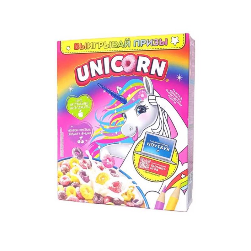 Нежные и ароматные радужные колечки с фруктовым вкусом - это наш готовый завтрак Unicorn в упаковке весом 375 г амм. Позвольте себе насладиться яркими вкусами и разнообразием фруктов в каждом кусочке, чтобы начать день с улыбкой и хорошим настроением. Сделайте свой завтрак волшебным с Unicorn - радужные колечки с фруктовым вкусом!