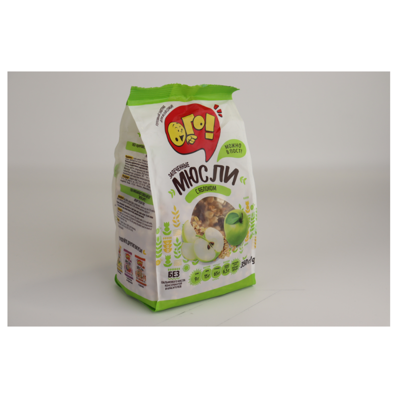 Мюсли запеченные с яблоком – это вкусное и ароматное блюдо из муки, сахара, яйца, яблока и масла. Они идеально подходят для завтрака или перекуса во время дня. Вес одной порции составляет 350 г амм.