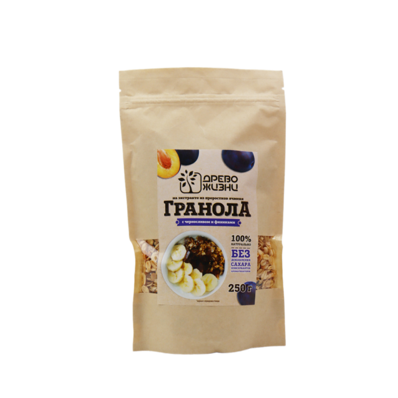 Погрузитесь в мир вкуса и пользы с гранолой Древо Жизни «с черносливом и финиками! Этот натуральный продукт станет отличным выбором для тех, кто заботится о своем здоровье. Гранола богата клетчаткой, витаминами и минералами, что делает ее идеальным завтраком или перекусом. Вы можете добавить ее в йогурт, кефир или молоко, а также использовать как начинку для выпечки или добавить в салаты. Попробуйте эту гранолу прямо сейчас и почувствуйте прилив энергии и удовольствия!»