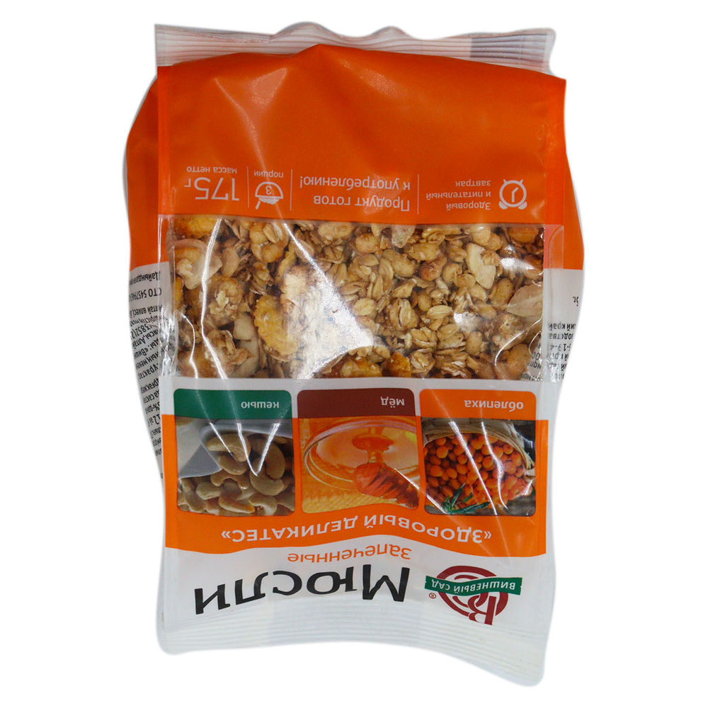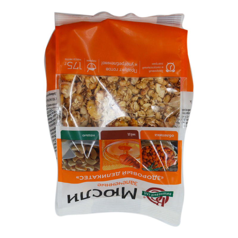 Мюсли запеченные здоровый деликатес облепиха мед кешью - это вкусный и полезный продукт, состоящий из муки, меда, облепихи, кешью и других натуральных ингредиентов. Они прохладные и приятные на вкус, идеально подходят для завтрака или перекуса. Они полностью натуральные и без добавления консервантов.