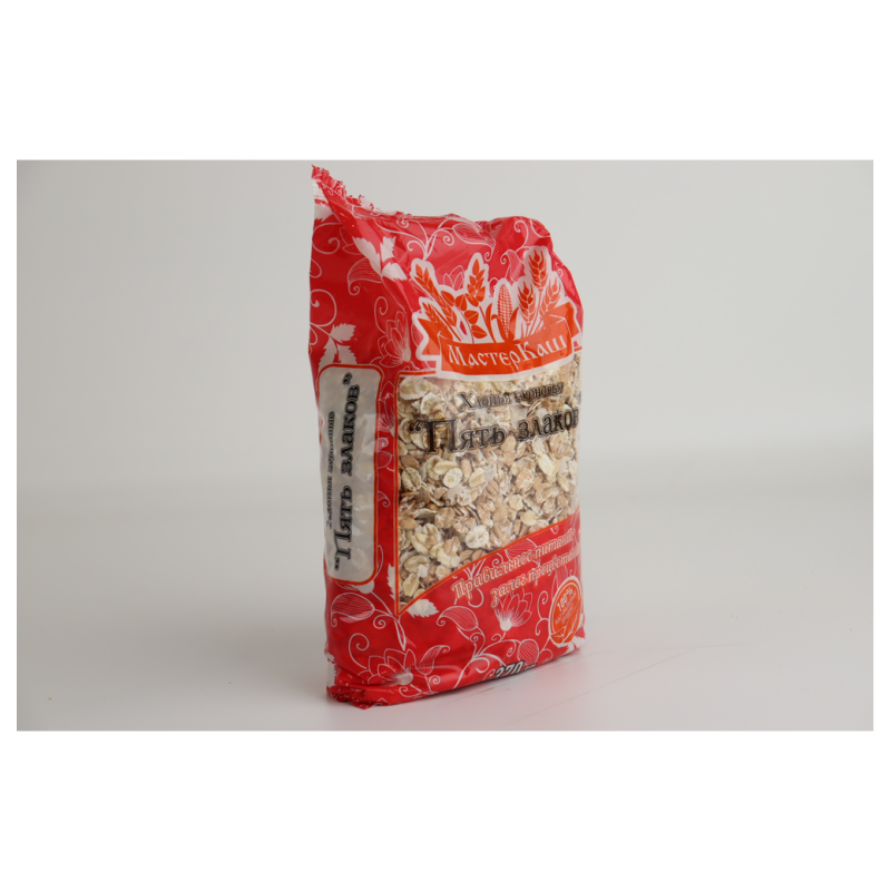 Хлопья для варки Мастеркаш Пять Злаков – это продукт из пяти злаков, включающий в себя пшеницу, овсянку, гречку, рис и кукурузу. Он идеально подходит для приготовления здорового и вкусного завтрака. Продукт представлен в удобной упаковке по 370 г амм.