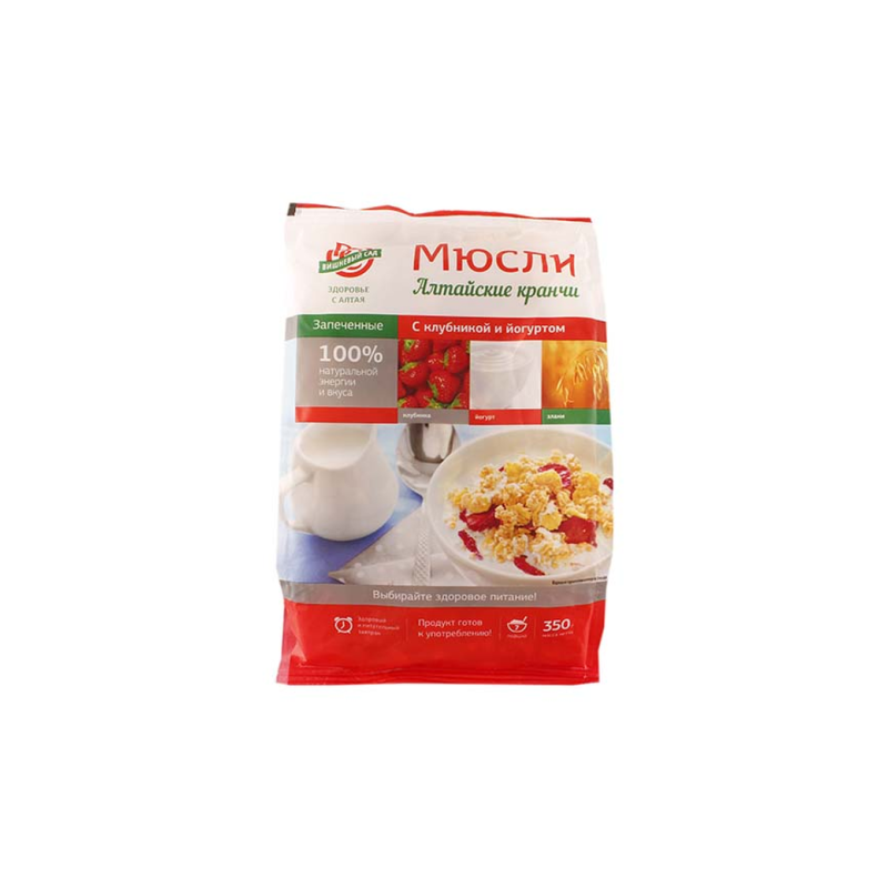 Мюсли Кранчи Вишневый Сад Клубный Йогурт 350 г П/П – это вкусный и полезный йогурт с вишневым соком и клубничным джемом. Он содержит минералы, витамины и белки, а также натуральные ингредиенты. Этот йогурт прекрасно подходит для завтрака или перекуса.
