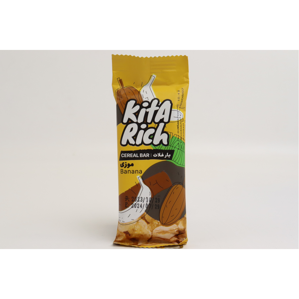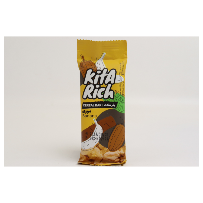 Батончик Kita Rich Банан в Шоколадной Глазури - это вкусное и полезное блюдо из злаков и фруктов. Он состоит из пшеницы, банана, шоколадной глазури и других ингредиентов. Вес батончика составляет 40 г амм. Он прекрасно подходит для завтрака или перекуса.