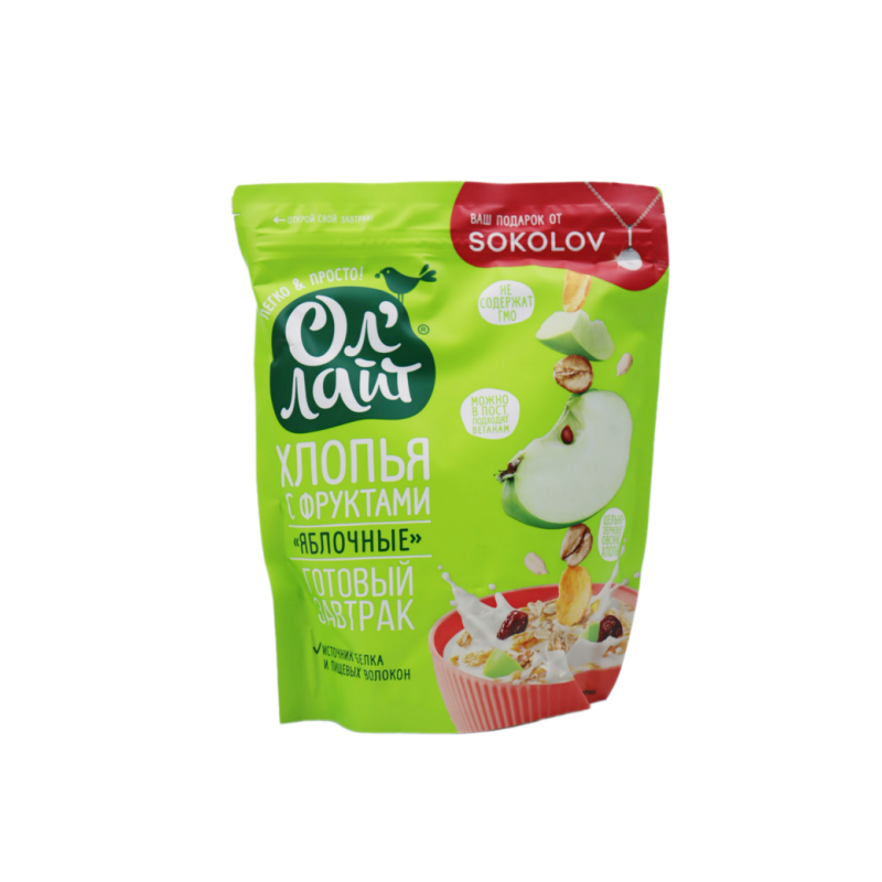 Освежающие и вкусные сухие хлопья с фруктами Ол Лайт Яблочные - идеальный выбор для быстрого и сытного завтрака. Смешайте их с йогуртом или молоком, добавьте свежие фрукты и наслаждайтесь бодрящим началом дня. Этот продукт не только вкусен, но и богат питательными веществами, которые помогут вам оставаться энергичными и активными весь день. Попробуйте сухие хлопья Ол Лайт Яблочные уже сегодня и почувствуйте разницу!