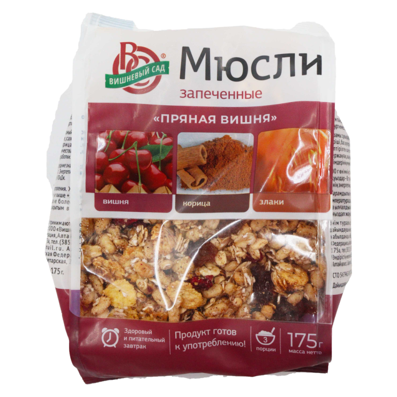 Мюсли запеченные пряная вишня вишня, мед, корица - это вкусные и ароматные печенья, приготовленные из высококачественных ингредиентов. Они содержат вишню, мед, корицу, муку, сахар, яйцо, растительное масло и другие продукты. Они идеально подходят для приготовления десертов или просто для угощения гостей.