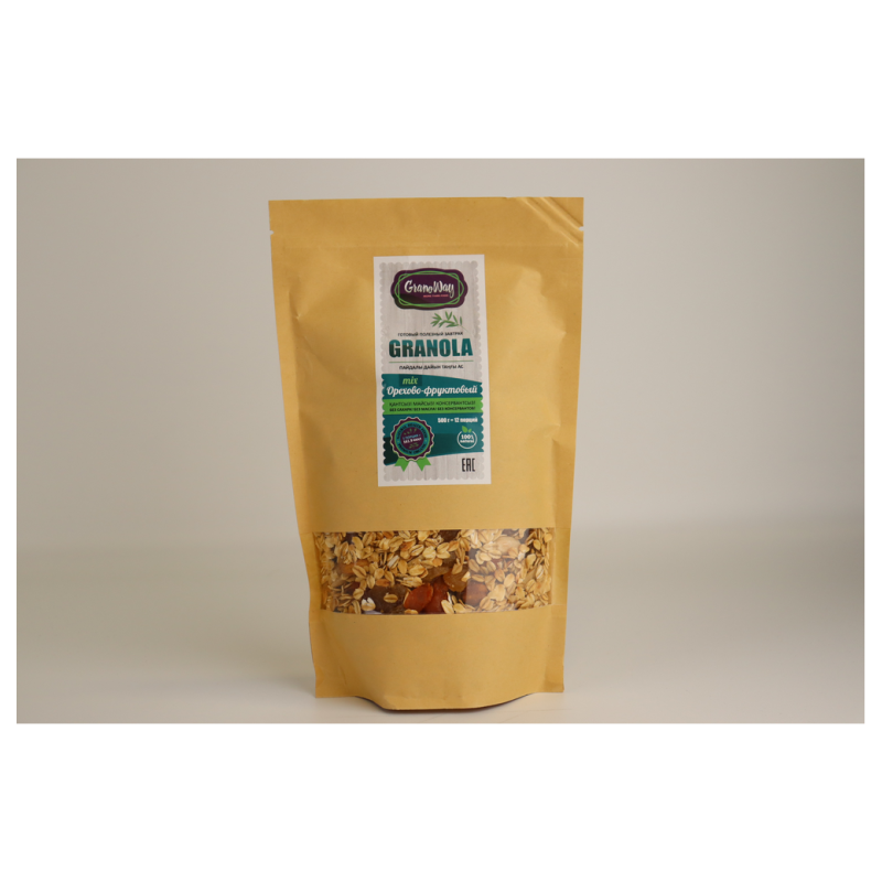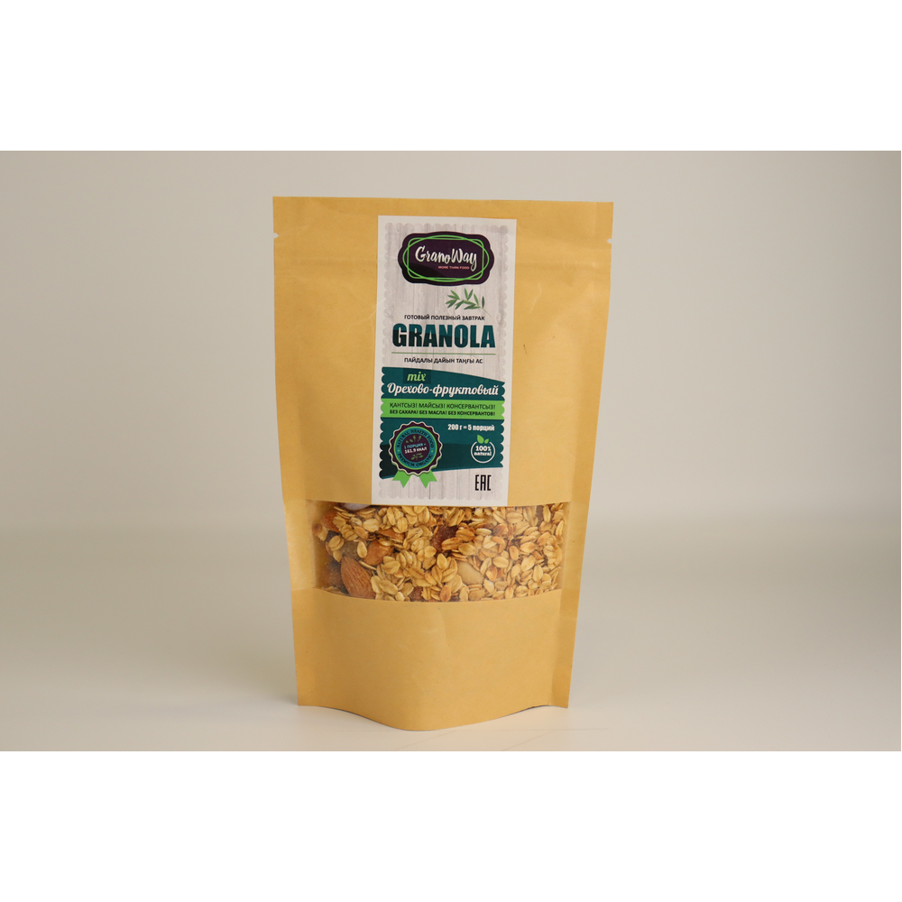 Гранола с ароматными нотками мёда, курагой и изюмом дополнена тремя видами орехов: арахисом, миндалём и фундуком. Полезный завтрак и заряд вкусной энергии на целый день.