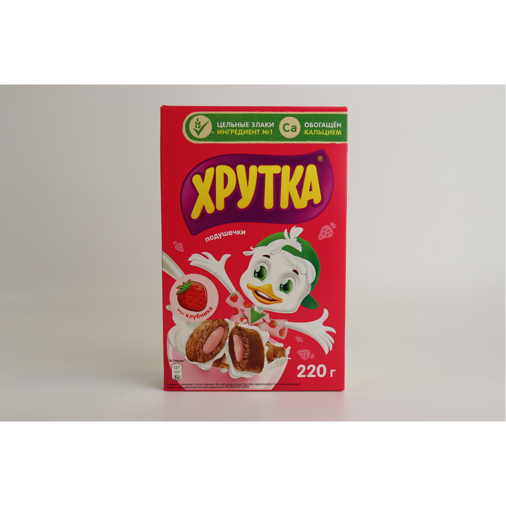 Насладитесь утром, наполненным вкусом и энергией, с готовым завтраком «Хрутка» - злаковыми подушечками со вкусом клубники, представленными в упаковке весом 220 г амм. Этот завтрак не только вкусный, но и полезный благодаря содержанию злаков и натуральных ингредиентов. Просто налейте молоко или йогурт, и ваш идеальный завтрак готов к употреблению!