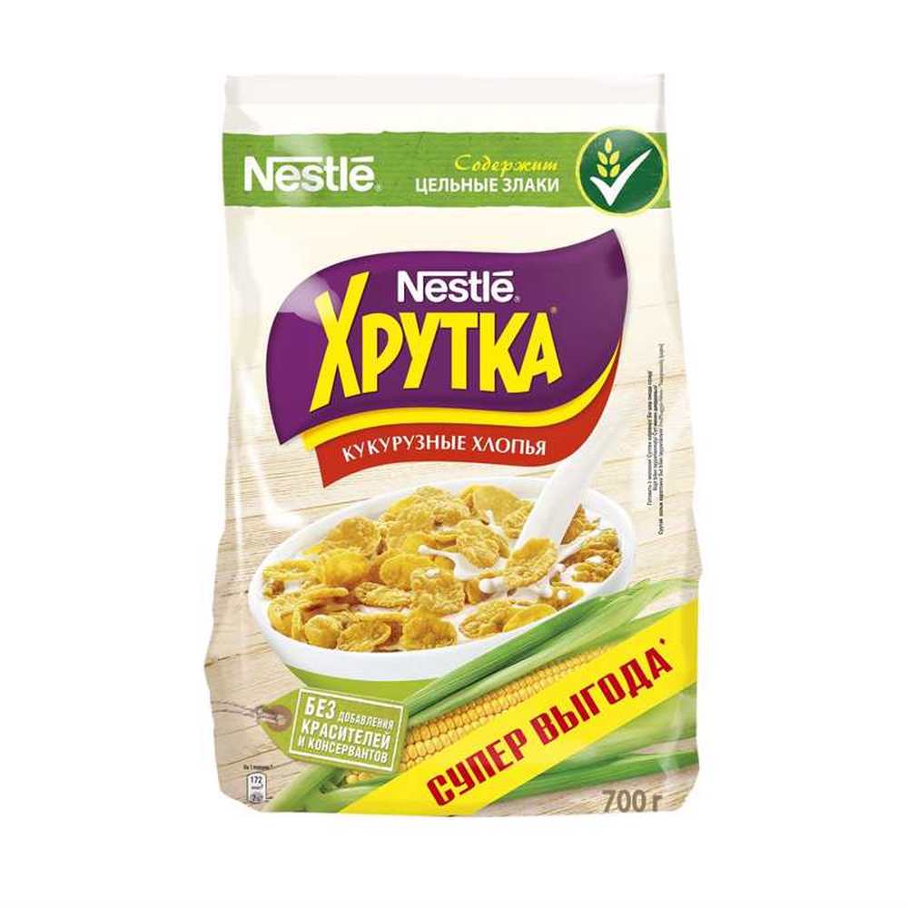 Готовый завтрак Nestle® Хрутка® Хлопья 700 г — это именно то, что вам нужно! Добавьте молоко, йогурт, кефир или сок — и ваше утро начнется со вкусного разнообразного завтрака для всех и каждого!