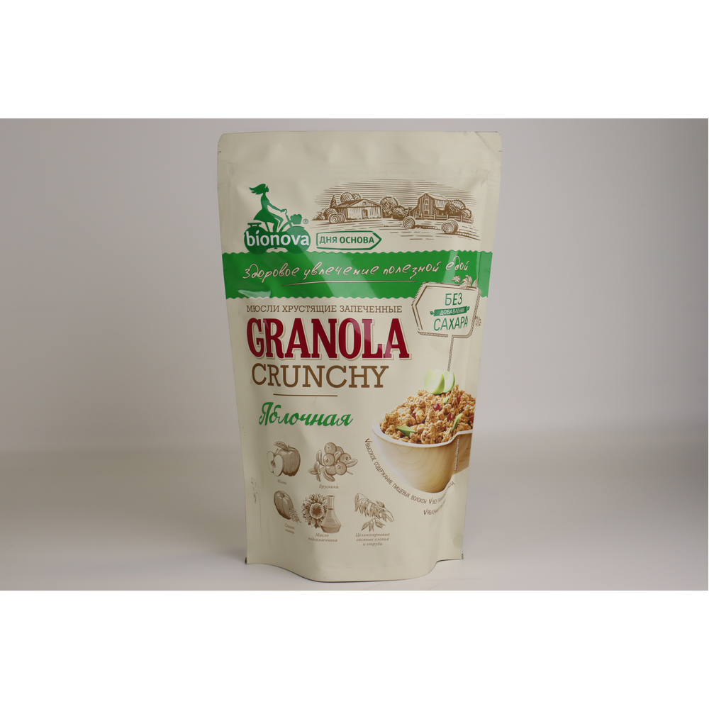 Мюсли Bionova Хрустящие Запеченные Яблочные - это вкусные и полезные печенья, приготовленные из натуральных ингредиентов. Они содержат муку из пшеницы, яблоки, сахар, масло растительное, молоко и другие природные компоненты. Печенья предлагаются в удобной упаковке по 400 г амм.