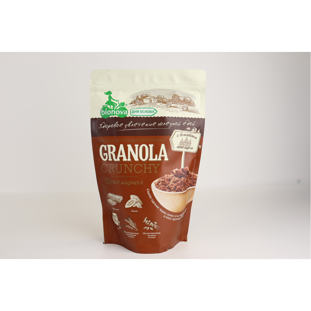 Мюсли Bionova Хрустящие Запеченные Шоколадные - это вкусные и ароматные печенья, приготовленные из натуральных ингредиентов. Они имеют приятную хрустящую текстуру и аромат шоколада. Состав печенья включает в себя муку, сахар, сливочное масло, яйца, какао и другие натуральные ингредиенты.