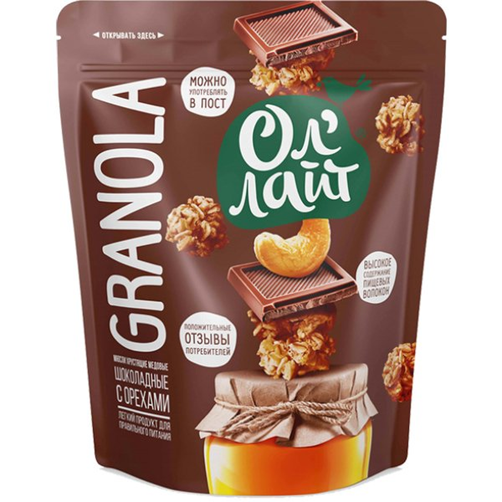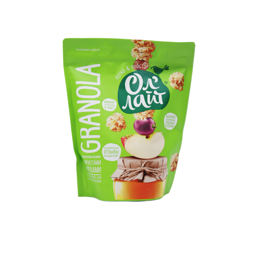 Мюсли Ол Лайт Хрустящие Медовые Фрукты с Орехами – это вкусный и полезный продукт, состоящий из меда, орехов, цельнозерновой муки, пшеничной муки, пшеничного проростка, сахара и масла растительного происхождения. Он имеет приятный хрустящий вкус и аромат меда. Вес продукта составляет 280 г амм.