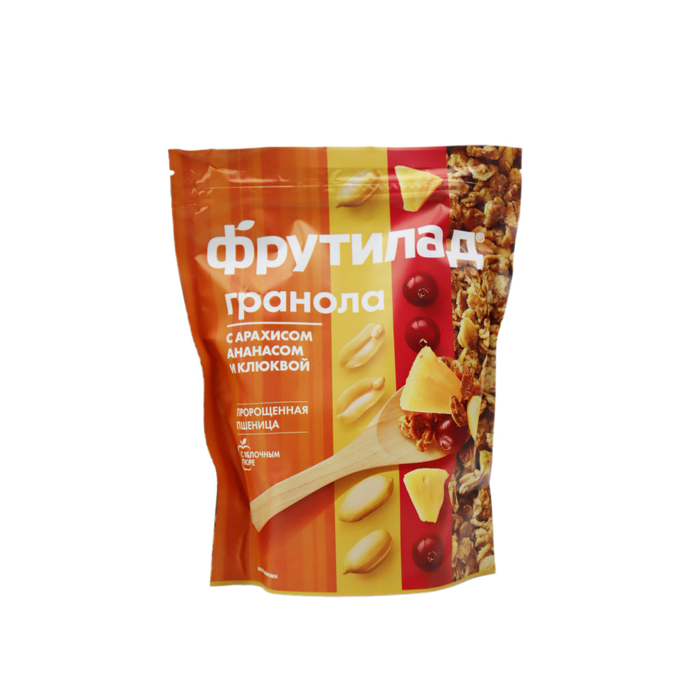 Мюсли запечённые с арахисом, ананасом и клюквой – это вкусное и полезное блюдо из натуральных ингредиентов. Они содержат муку пшеницы, арахис, ананас, клюкву, сахар, соль и масло растительное. Вес одной упаковки составляет 270 г амм. Мюсли прекрасно подходят для завтрака или перекуса.