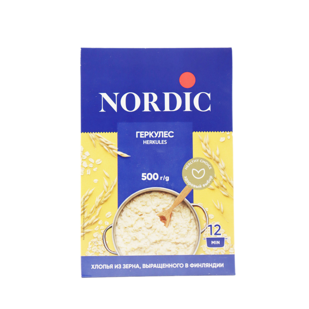 Овсяные хлопья Геркулес Финский Nordic – это вкусный и полезный продукт для здорового питания. Они содержат много витаминов и минералов, а также белки, жиры и углеводы. Они произведены из натуральных ингредиентов, включая овсяную муку, рис, пшеницу, гречку и другие злаки. Вес пакета составляет 500 г амм.