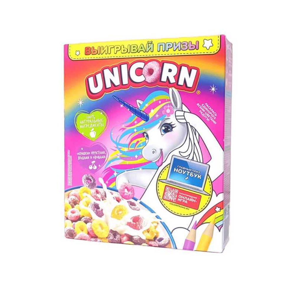 Готовый завтрак «Радужные колечки Unicorn» с фруктовым вкусом весом 195 г амм. Состоит из муки пшеничной, сахара, масла растительного, протеинового концентрата, пищевых добавок, фруктового порошка. Завтрак «Радужные колечки Unicorn» представляет собой вкусный и полезный продукт, который придаст Вам энергию на весь день. Он идеально подходит для завтрака или перекуса.