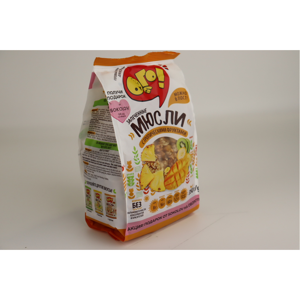 Мюсли запеченные с тропическими фруктами - это вкусное и ароматное блюдо, изготовленное из натуральных ингредиентов. Оно состоит из муки, сахара, масла, яиц, тропических фруктов и других продуктов. Вес одной упаковки составляет 350 г амм. Это идеальное блюдо для любого праздника или приема пищи.