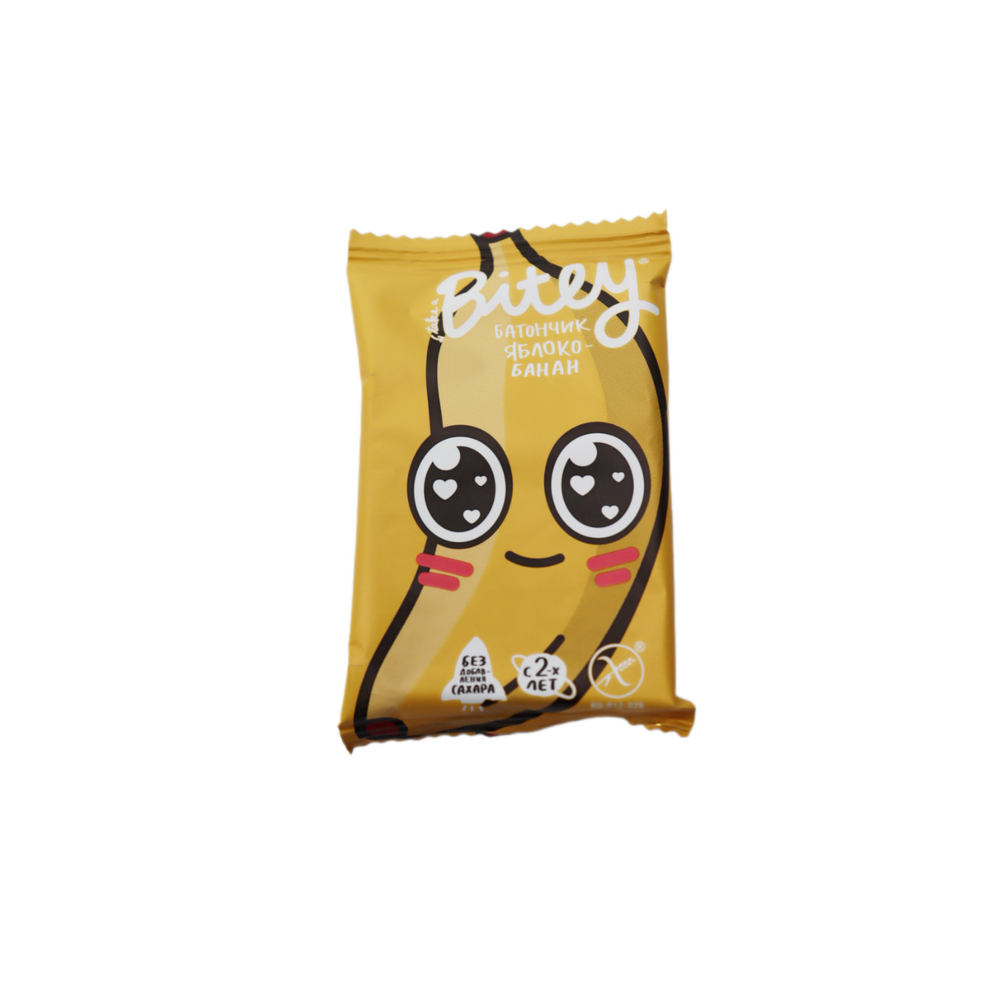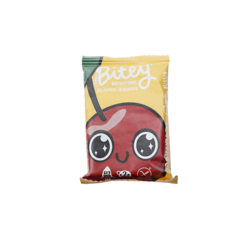 Батончик Bitey сочетает в себе вкус яблока и вишни. Он произведен из натуральных ингредиентов и имеет вес 25 г амм. Батончик подходит для завтрака или перекуса в дорогу.