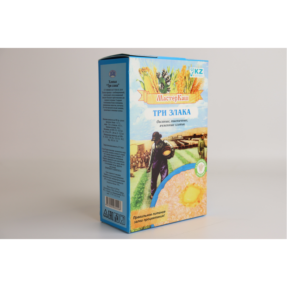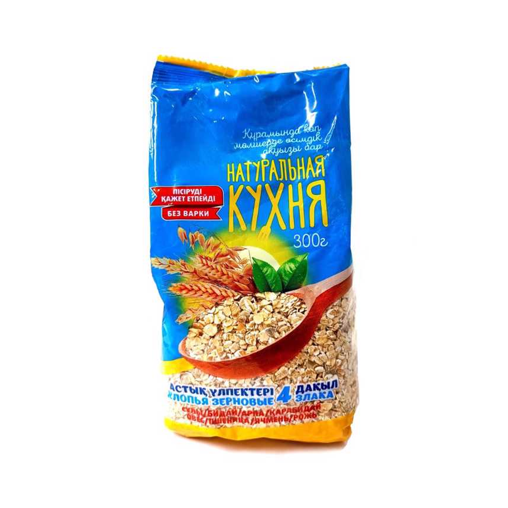 Это сочетание пользы хлопьев овсяных, пшеничных, ячменных и ржаных. Соблюдая весь процесс производства (зерна проходят обработку паром и разрезаются, перед плющением), сохраняются все полезные вещества и витамины. Всего за несколько минут из этих хлопьев можно приготовить легкую, пышную и полезную кашу. Овсяные хлопья содержат полисахариды, оказывающие лечебное действие на желудочно-кишечный тракт.