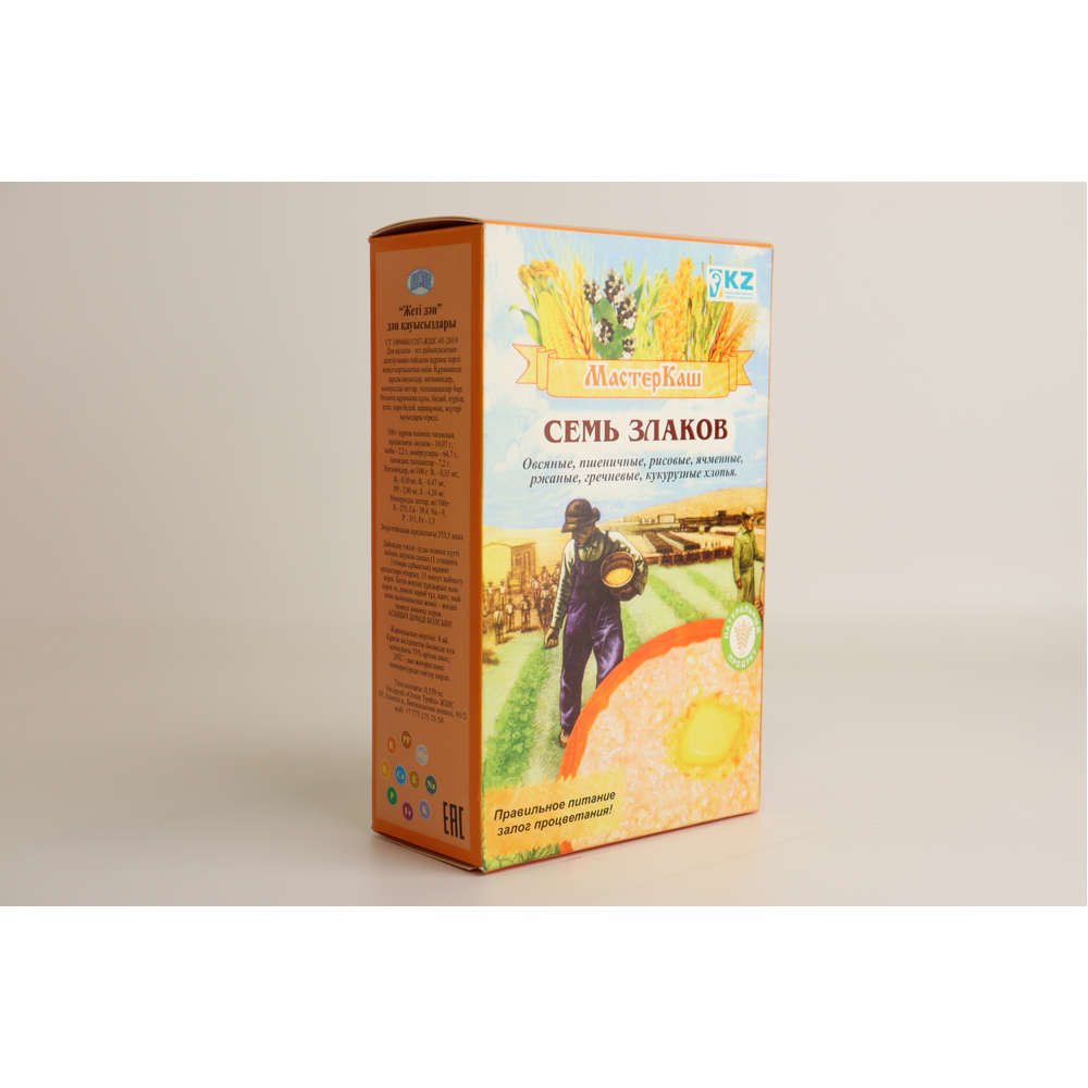 Хлопья для варки Мастеркаш Семь Злаков представляют собой комбинацию из семи злаков: пшеницы, овса, рожь, гречки, кукурузы, гороха и фасоли. Они имеют приятный аромат и вкус. Вес пакета составляет 350 г амм.