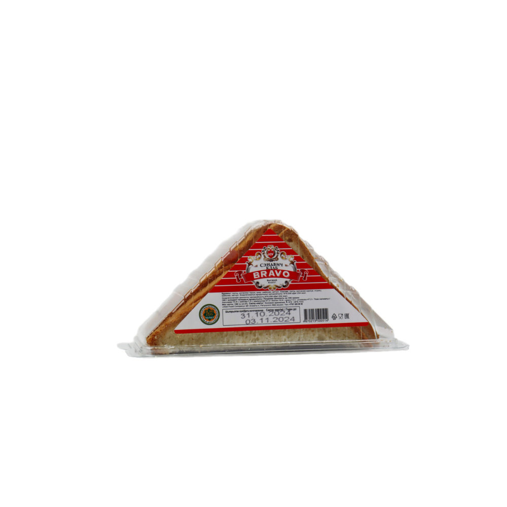 Сэндвич Bravo - идеальный выбор для перекуса! Сочный и аппетитный, он подойдет как для завтрака, так и для обеда. Сэндвич состоит из нежного мяса, свежих овощей и ароматного хлеба. Прекрасно подойдет для пикника, похода или быстрого перекуса на работе. Попробуйте сэндвич Bravo уже сегодня и оцените его неповторимый вкус!