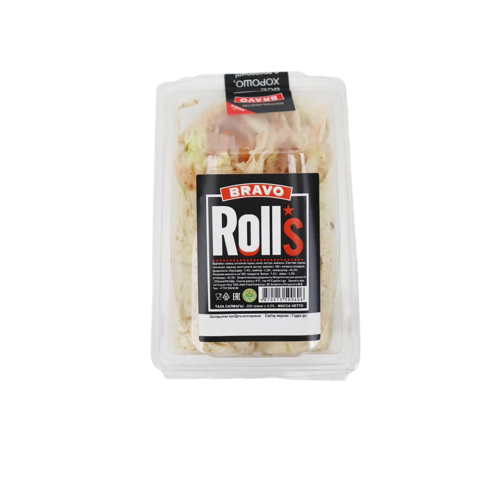 Попробуйте наши вкусные роллы Bravo весом 200 г амм! Этот уникальный продукт сочетает в себе нежный рис, свежие овощи и аппетитное начинение. Идеально подходит для легкого перекуса или ужина. Попробуйте добавить соевый соус для дополнительного вкуса или приготовьте роллы с авокадо и кунжутом для особого удовольствия. Не упустите возможность попробовать наши вкусные роллы Bravo прямо сейчас!