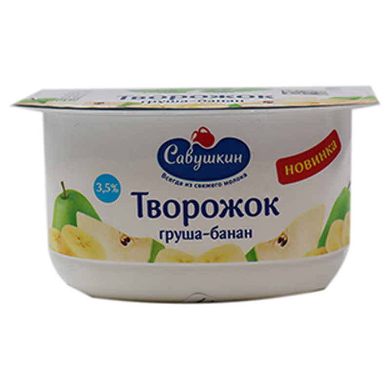 Паста творожная «Савушкин Вкус» с вкусом груши/банана, содержащая 3,5% жира, упакованная в пластиковую банку весом 120 г аммов - это нежное и ароматное лакомство, которое удовлетворит даже самых взыскательных гурманов. Сочетание натурального творога с экзотическими фруктовыми вкусами создает неповторимое сочетание вкусов и текстур. Этот продукт отлично подходит для завтраков, десертов или полезных перекусов, придавая вашему столу особый шарм и изысканный вкус.