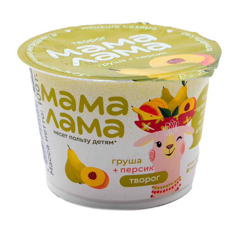 Творог «Мама Лама» с добавлением персика и груши, содержащий 3,8% жира, упакованный в порционную упаковку весом 100 г амм, представляет собой нежный и ароматный десерт или завтрак. Сочетание нежного творога с фруктовым вкусом персика и груши делает его вкусным и питательным. Этот продукт идеально подходит для употребления в качестве десерта или легкого перекуса.