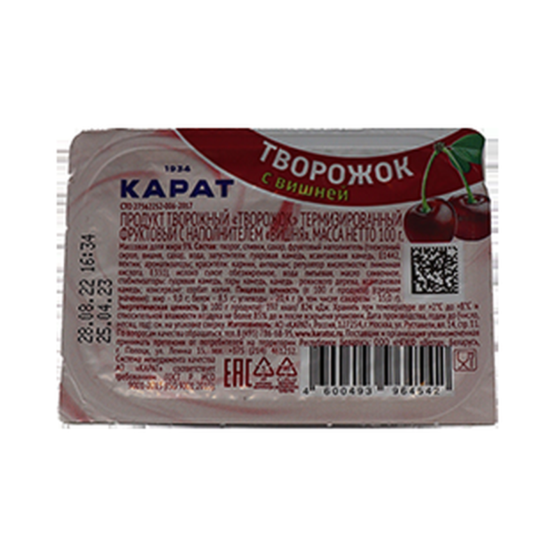 Творожный продукт Karat с вишней, содержащий 9% жира, и имеющий вес 100 г амм, - это изысканное сочетание нежного творога с ягодной сладостью вишни. Обладая нежной текстурой и насыщенным вкусом, этот продукт станет прекрасным выбором для тех, кто ценит натуральные и вкусные лакомства. Насыщенный вкус вишни и нежный творог создадут неповторимый опыт для ваших вкусовых рецепторов.