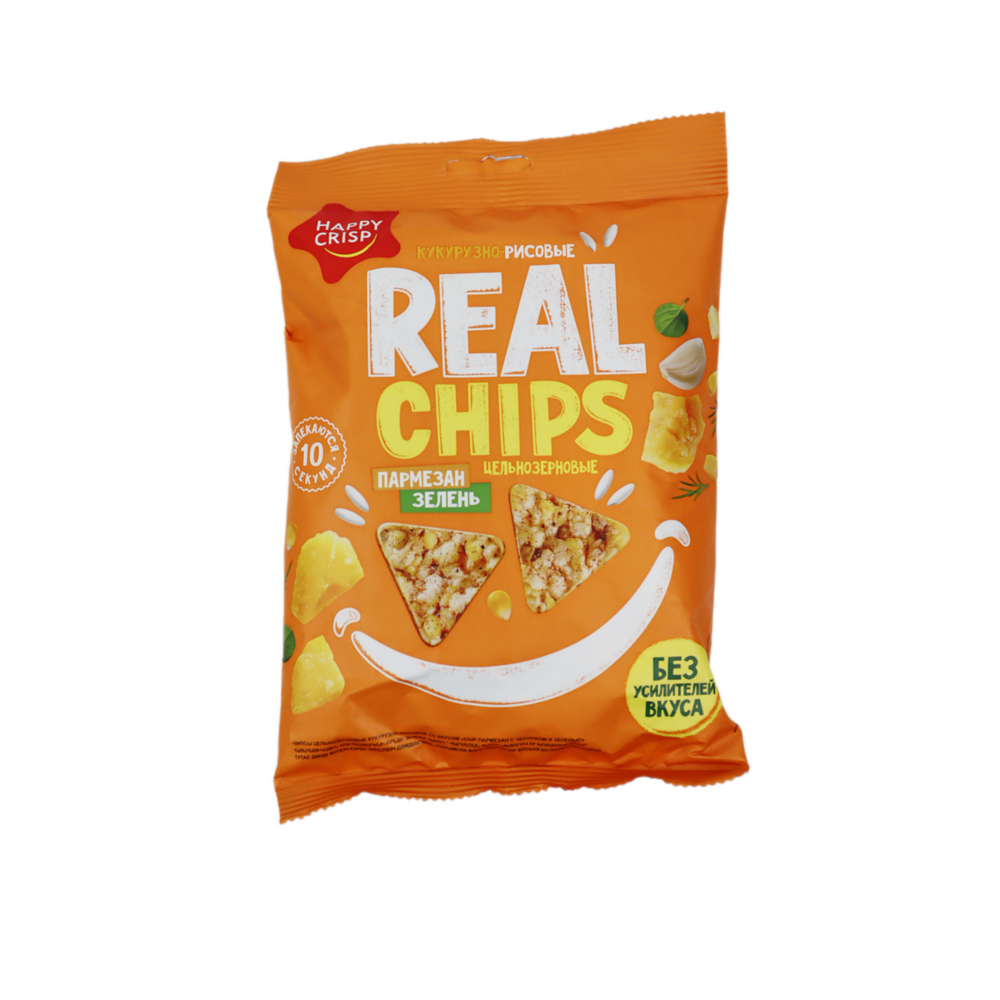 Нежные и хрустящие чипсы Real Chips с ароматным сочетанием пармезана, чеснока и зелени - идеальная закуска для любого случая. Без глютена и искусственных добавок, они подойдут как для вечернего ужина, так и для веселой вечеринки с друзьями. Попробуйте добавить их в салат или подавайте с соусом на основе йогурта для неповторимого вкуса. Попробуйте сегодня и наслаждайтесь!