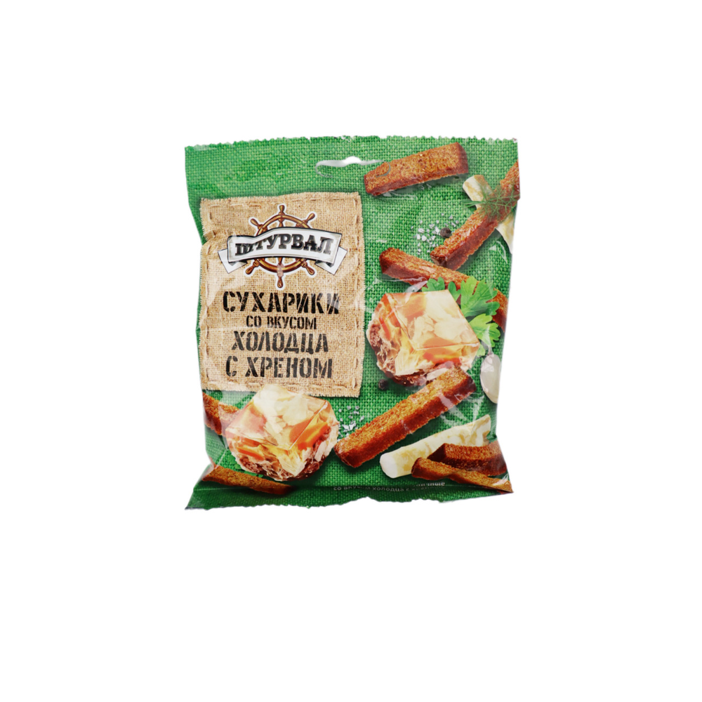 Хотите добавить немного остроты и хруста к вашему обеду или перекусу? Попробуйте наши ржано-пшеничные сухарики «Штурвал» с вкусом холодца/хрена. Этот великолепный перекус идеально подойдет к супам, салатам или просто в качестве закуски к пиву. Попробуйте их с сыром или ветчиной для идеального сочетания вкусов. Не упустите возможность попробовать этот вкусный и хрустящий продукт прямо сейчас!