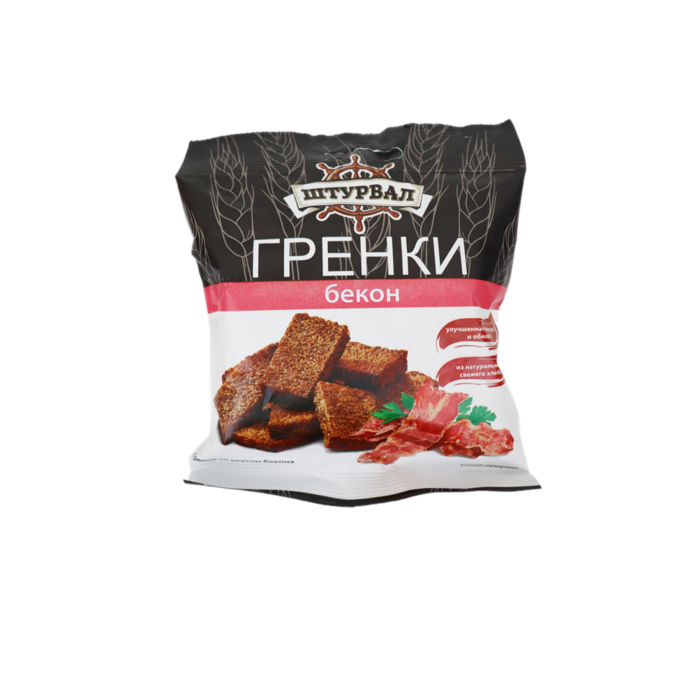 Хрустящие гренки «Штурвал» с неотразимым вкусом бекона - идеальная закуска для любого времени суток. Этот вкусный и ароматный продукт станет отличным дополнением к вашему обеду или перекусу. Попробуйте их с сыром, оливками или гуакамоле для настоящего вкусового взрыва. Не упустите возможность попробовать этот уникальный продукт прямо сейчас!