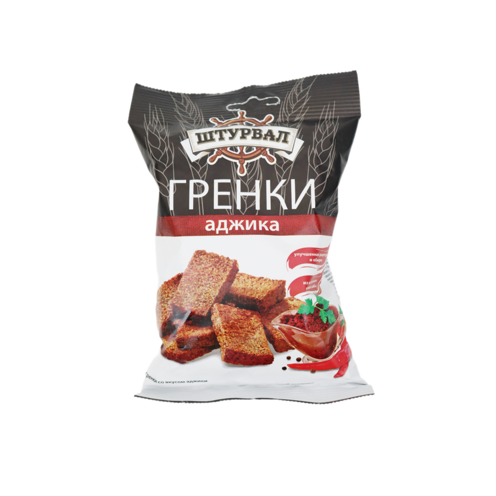 Хрустящие гренки «Штурвал» с аджикой - идеальная закуска для любого случая! Сочетание ржаного и пшеничного хлеба придает им неповторимый вкус, а острая аджика добавляет пикантности. Попробуйте их с сыром, оливками или просто в качестве перекуса. Удобная упаковка позволяет взять их с собой в дорогу или на пикник. Не упустите возможность попробовать этот вкусный и ароматный продукт!