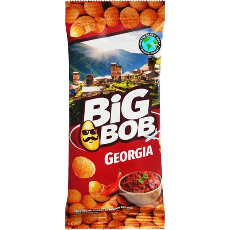 Откройте для себя аромат и вкус Грузии с нашим арахисом Big Bob, пропитанным аджикой. Каждая упаковка весом 50 г аммов содержит отборные арахисовые орешки, обогащенные пряным вкусом грузинской аджики, чтобы добавить пикантности вашему перекусу. Погрузитесь в мир восточных вкусов с арахисом Big Bob вкус Грузии.