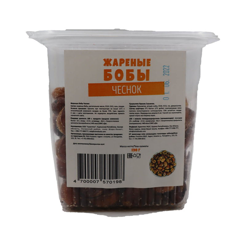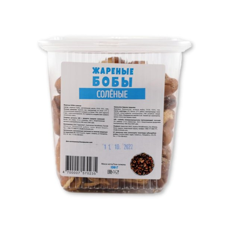 Бобы жареные, соленые, весом 130 г амм – это вкусное и питательное угощение, которое отлично подходит как перекус или закуска к любому приему пищи. Их хрустящая текстура и приятная соленость делают их незаменимым атрибутом вечеринок или просто в качестве закуски в течение дня. Удобная упаковка обеспечивает долговечность и сохранность продукта, гарантируя его свежесть и вкус на протяжении всего срока хранения.