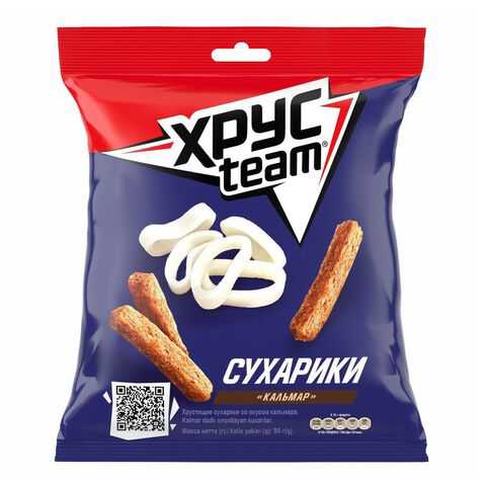 Хрустящие сухарики «ХрусTeam Stix» с вкусом кальмара - отличная закуска для любого времени дня. Их хрустящая текстура и насыщенный вкус кальмара не оставят вас равнодушными. Попробуйте добавить их в салаты или супы для дополнительной хрустящей нотки. Не упустите возможность попробовать этот вкусный и оригинальный продукт!