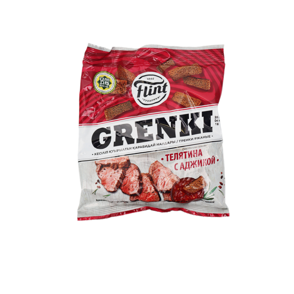 Хрустящие ржаные гренки Flint с нежным вкусом телятины и остреньким аджикой - отличный выбор для перекуса или закуски к напитку. Идеально подходят для пикника, вечеринки или просто как вкусная закуска к чаю. Попробуйте сочетать их с сыром, оливками и свежими овощами для создания вкусного закусочного плэйт. Добавьте в корзину прямо сейчас и наслаждайтесь!