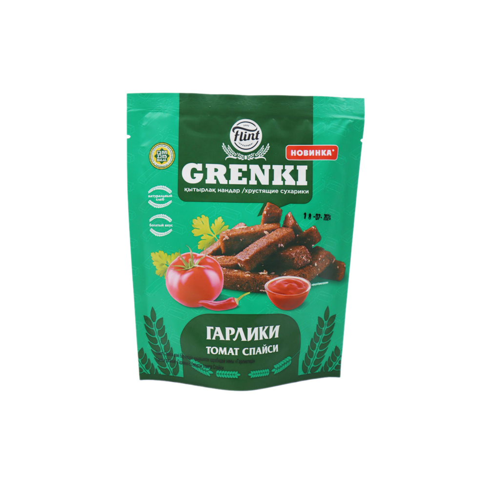 Гренки ржаные «Гарлики» со вкусом томата и спайси (острого томата) — это хрустящие ржаные хлебные палочки, приправленные смесью, придающей им пикантный вкус томата с остротой.