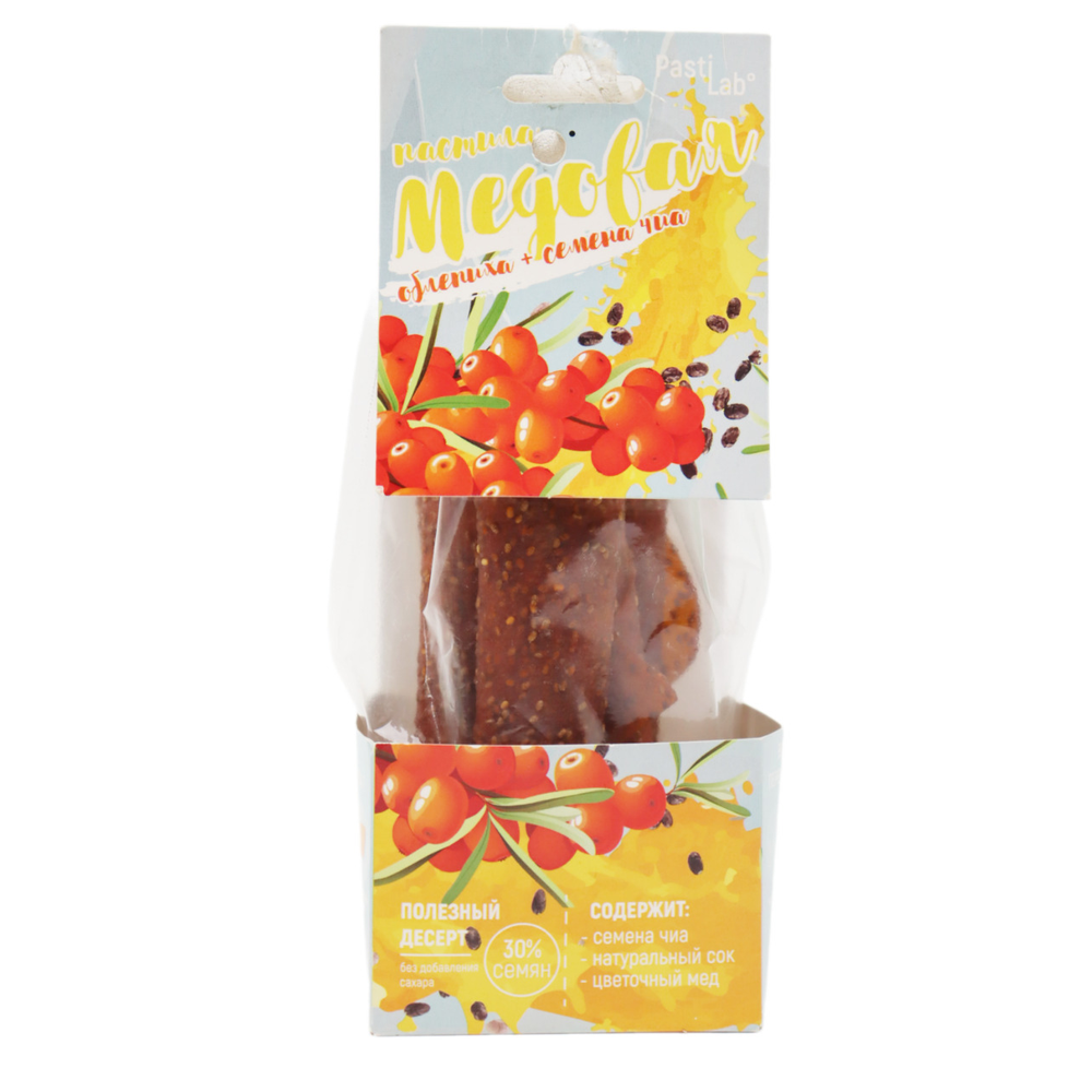 Нежная и ароматная медовая пастила Pastilab с облепихой и семенами чиа - идеальное угощение для любого времени дня. Сочетание сладости меда, кислинки облепихи и хрустящих семян чиа создает неповторимый вкус, который завоюет ваше сердце с первого кусочка. Попробуйте добавить эту пастилу к чаю или кофе для приятного утреннего завтрака, или же наслаждайтесь ею в качестве легкой закуски в течение дня. Попробуйте смешать ее с йогуртом и свежими фруктами для вкусного и полезного десерта. Попробуйте сами и поделитесь впечатлениями с друзьями!