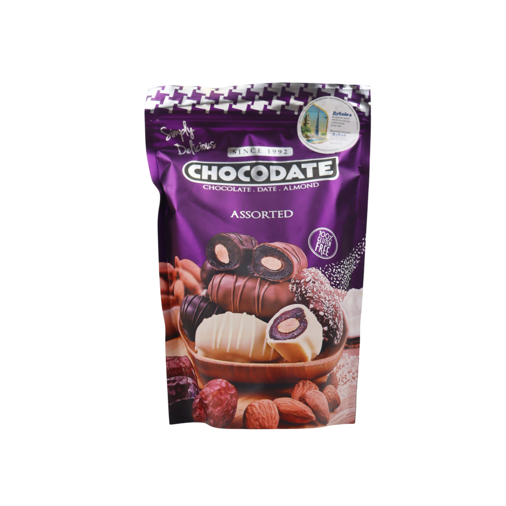 Нежные финики, обволакивающиеся ароматным шоколадом - вот что делает Chocodate таким восхитительным угощением. Этот ассортимент включает в себя разнообразные вкусы, которые удовлетворят любой вкус: от классического молочного шоколада до экзотического белого шоколада. Chocodate - это идеальное лакомство для тех, кто ценит сочетание сладости фиников и нежности шоколада. Попробуйте добавить Chocodate к чашке кофе или чая для идеального вечернего удовольствия. Погрузитесь в мир вкуса с Chocodate и наслаждайтесь каждым кусочком!