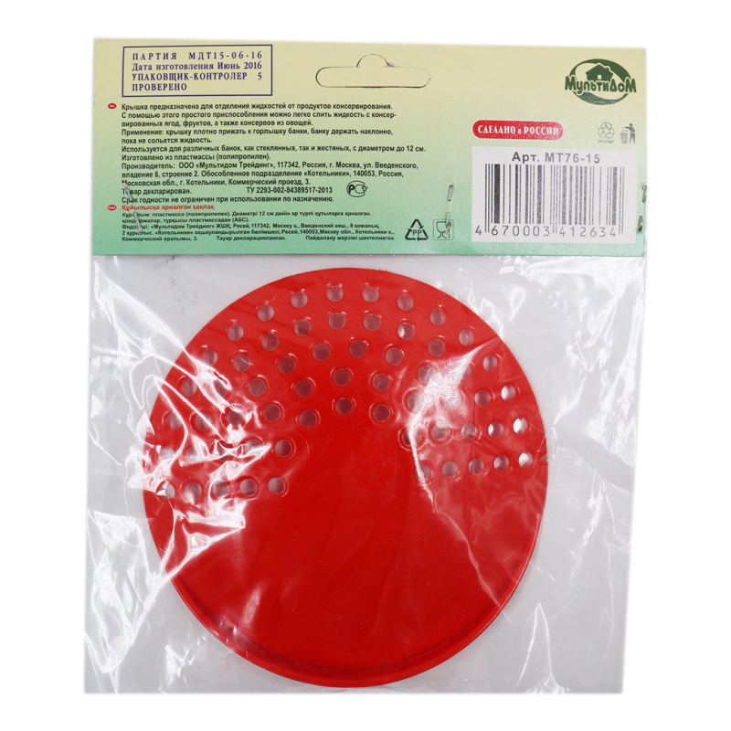 Крышка Multidom для слива - это незаменимый аксессуар для вашей кухни! С ее помощью вы сможете легко и быстро закрыть банку или контейнер с любым продуктом диаметром до 10,5 см. Эта крышка идеально подходит для хранения остатков еды, консервирования или приготовления домашних десертов. Просто установите крышку на горлышко и нажмите на центр, чтобы создать вакуум и герметично закрыть контейнер. Попробуйте использовать крышку Multidom для слива для хранения салатов, супов или домашних вареньев - и вы оцените ее удобство и функциональность! Не упустите возможность сделать свою кухню более организованной и удобной - приобретите крышку Multidom прямо сейчас!