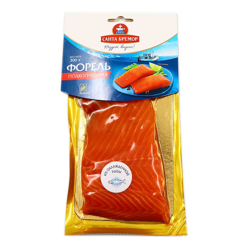 Филе подкопченной форели от компании Бремор представлено в виде куска весом 300 г амм. Этот продукт представляет собой высококачественную подкопченную форель с нежным мясом и насыщенным ароматом. Он идеально подходит как для приготовления закусок, так и для использования в качестве основного блюда, добавляя блюдам изысканный вкус и аромат копчения.