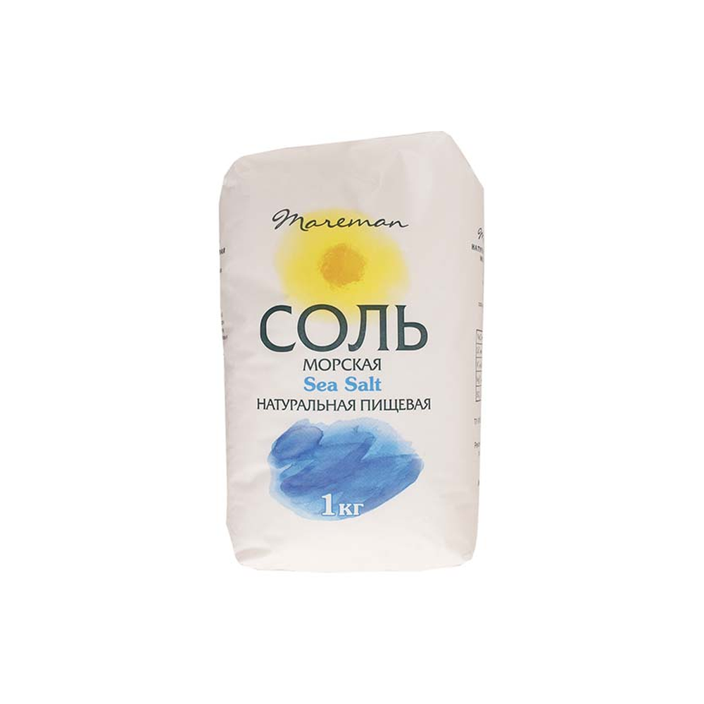 Соль морская «Поварская» пищевая садочная помола №1 от бренда Mareman упакована в полиэтиленовую упаковку весом 1 кг Эта соль обладает натуральным происхождением и высоким качеством, идеально подходит для использования в кулинарии. Упаковка обеспечивает удобство хранения и защищает соль от влаги и внешних воздействий, сохраняя ее свежесть и качество.