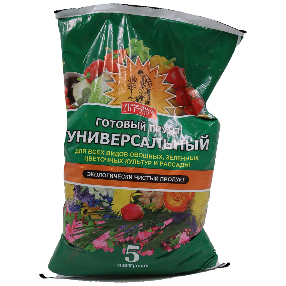 Универсальный готовый грунт «Сам себе агроном» - идеальное решение для всех видов растений. Специально разработанный состав обеспечивает оптимальное питание и защиту корней, способствуя здоровому росту и развитию растений. Прост в использовании: достаточно высыпать грунт в горшок и посадить растение. Идеально подходит для декоративных и плодовых растений, как в помещении, так и на открытом воздухе. Попробуйте использовать этот грунт для посадки цветов на балконе или овощей в саду - результат вас приятно удивит! Действуйте сейчас и создайте свой маленький уголок природы с помощью универсального грунта «Сам себе агроном» .