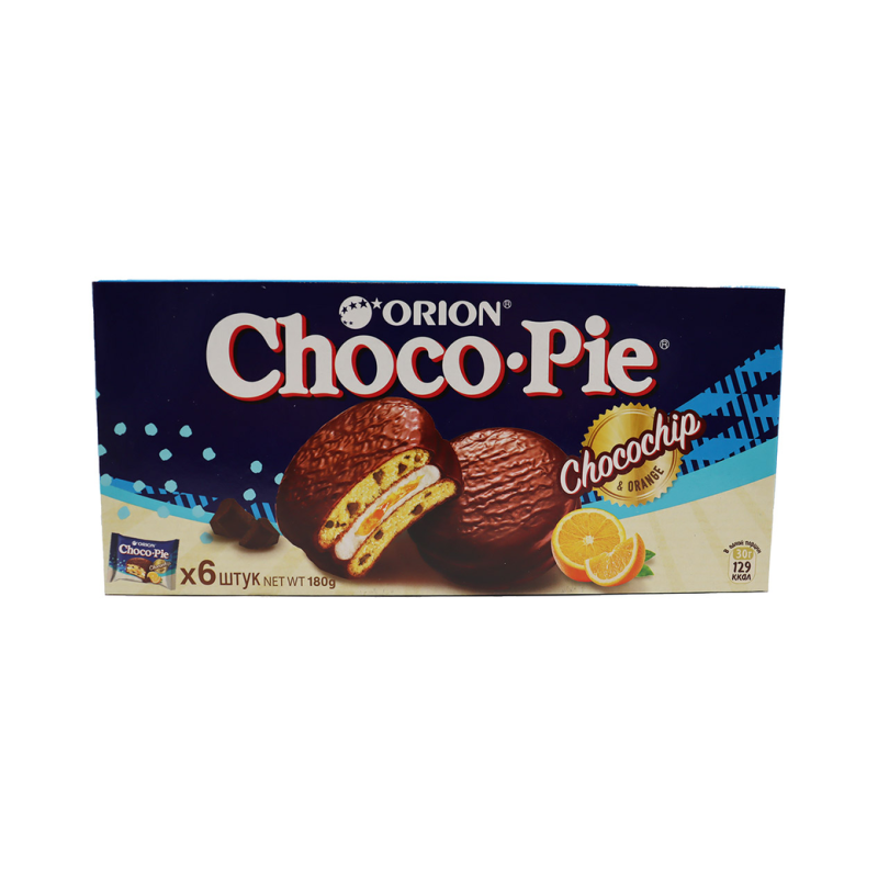 Пирожное Orion Choco Pie в глазури 6шт 30 г - это нежный бисквит с оригинальной зефирной начинкой Маршмеллоу, покрытый плотным слоем шоколадной глазури.